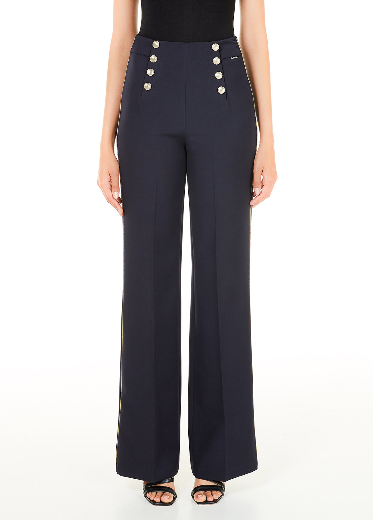13 ways to cruise into seafaring style They may not make waves but they wont set you adrift on tricky trend waters either. Find a new pair of womens navy trousers in our collection of casual jeans and elegant cuts. Womens 6-Button Sailor Trousers Casual Work Office Basic Flare Dress Pants High Waist Straight-Leg Long Pants.